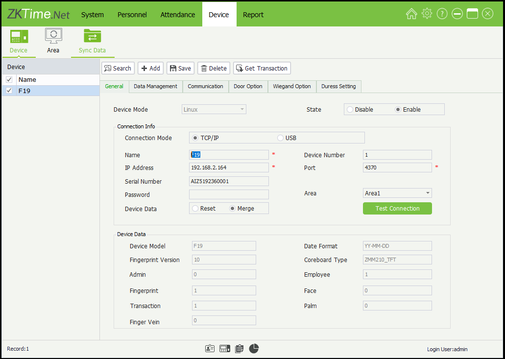 2. Asumsikan Device sudah ditambahkan ke zktime.net