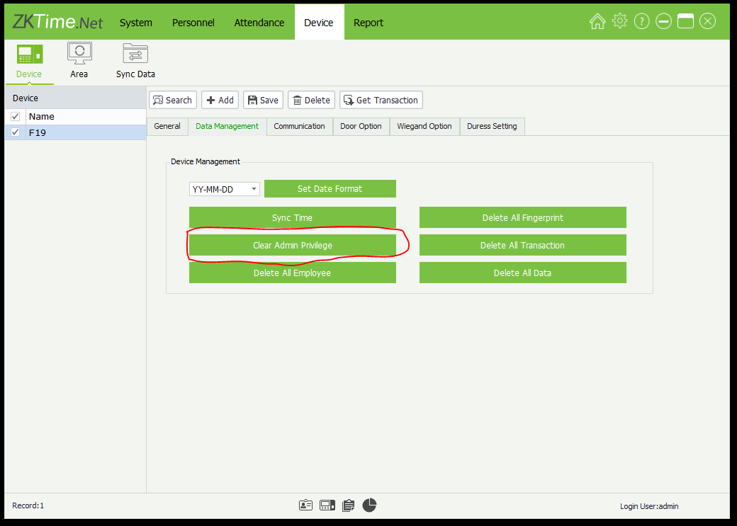 4. Pilih Data Management lalu Pilih Clear Admin Privilege.