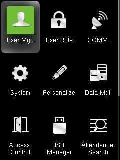 mulai perangkat, masuk ke menu utama, Pilih Menu User Mgt à New User