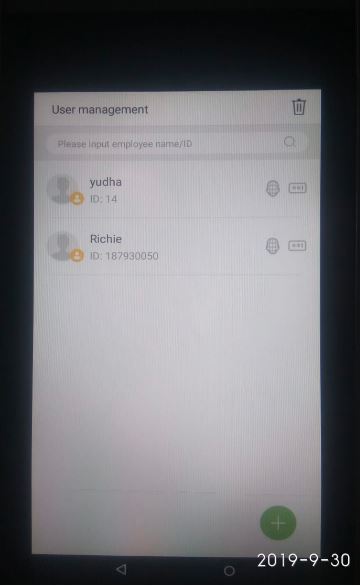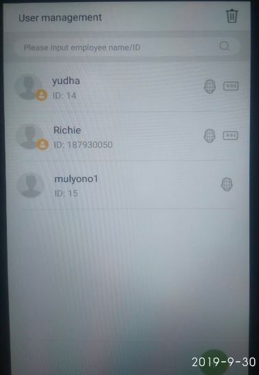 Setelah SCAN wajah , lihat di Menu User management akan