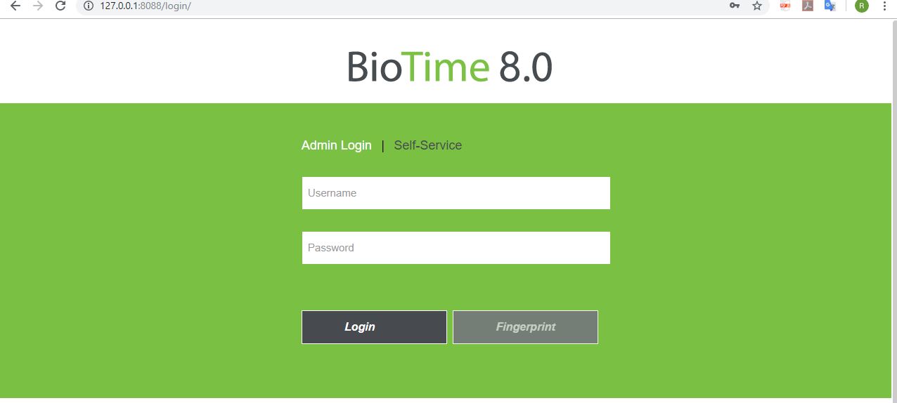 3. Setelah di install lalu login biotime 8.0 dengan username dan password "admin"