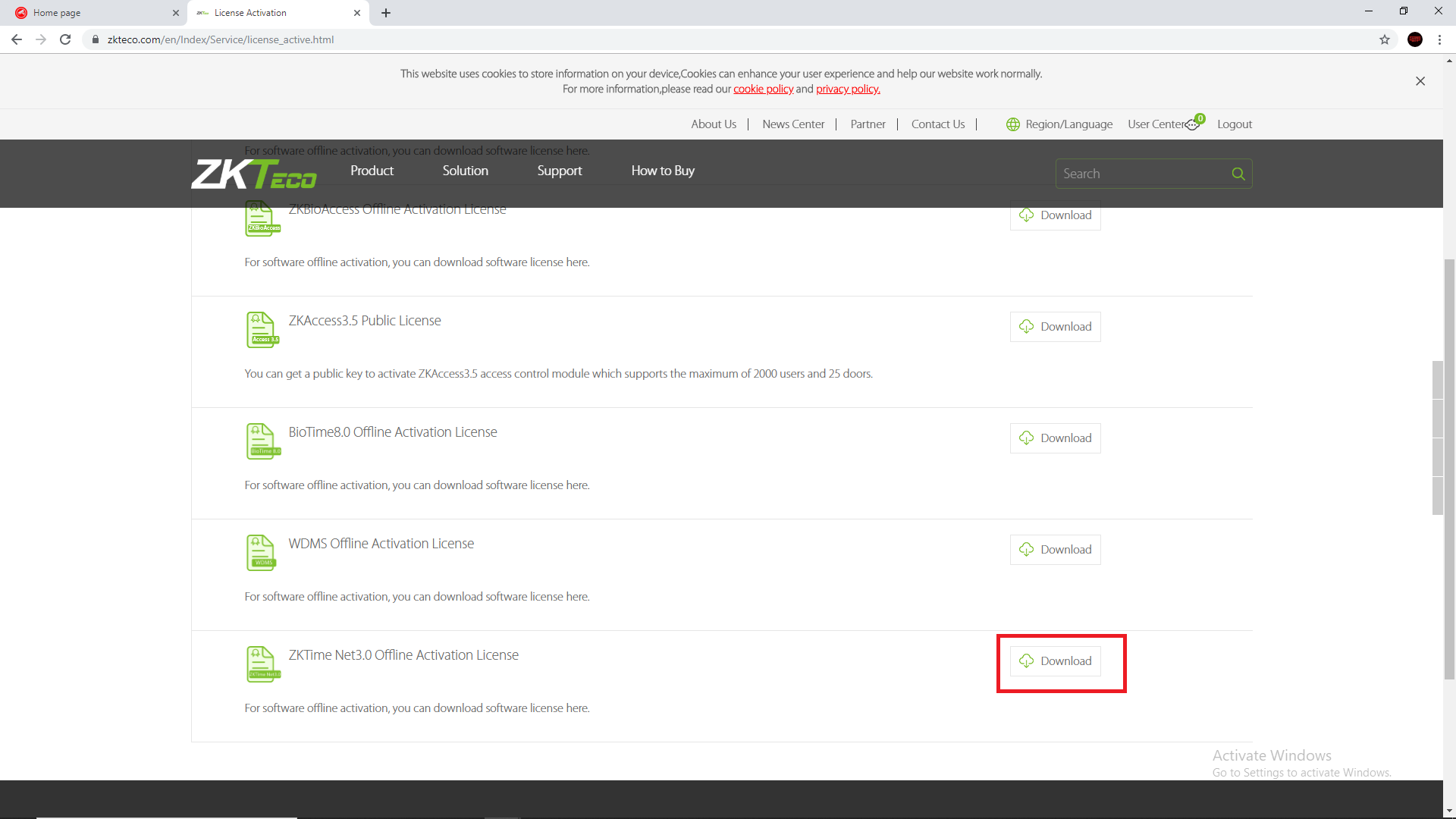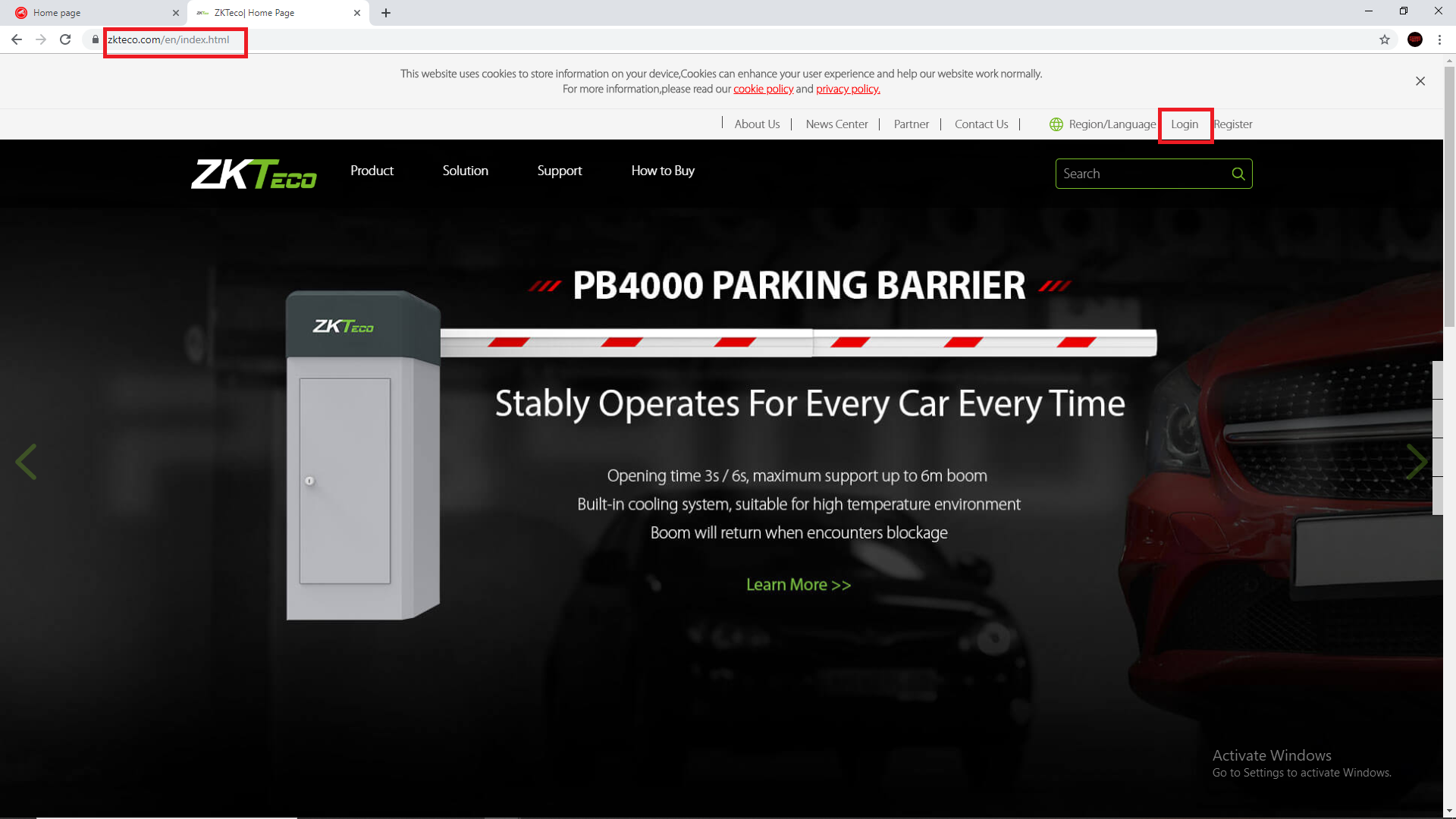 1. Buka web browser, lalu login pada website https://www.zkteco.com/en/