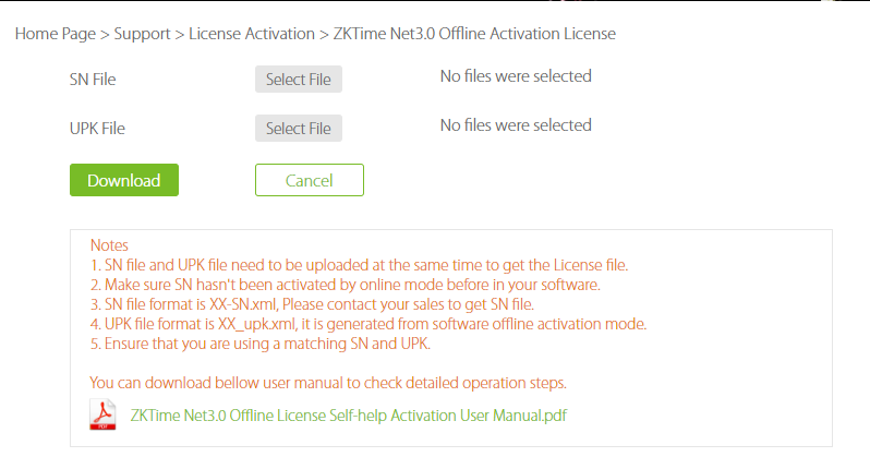 6. Upload file terkait. Klik "Select File" untuk mengunggah file SN dan UPK yang sesuai dan klik "Download", Anda akan dapatkan file XX-License.xml.