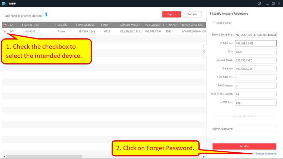 How to reset Hikvision DVR NVR password using SADP tool
