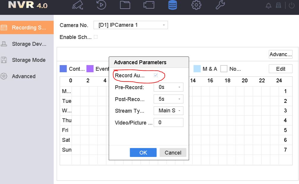 2. masuk menu schedule lalu pilih advance - enable record audio