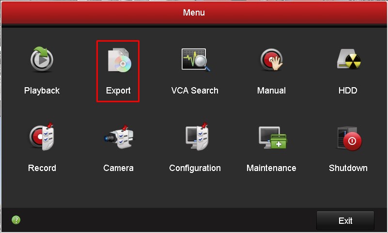 * Kemudian buka menu backup pada dvr hikvision dengan cara klik kanan pada tampilan monitor kemudian pilih Menu. Setelah masuk menu pilih menu Export