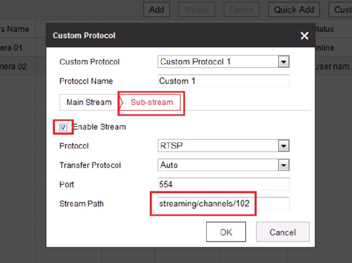Custom Protokol dibuat oleh pengguna dengan RTSP dan port 554. Kemudian, kamera IP dapat ditambahkan ke NVR dengan Custom Protokol untuk mendapatkan streaming pada aplikasi player