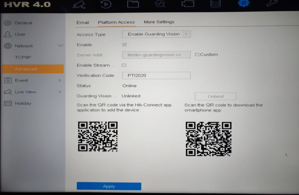 Login ke DVR mu sebagai admin (baik menggunakan cara remote/local), lalu cari menu untuk setting cloud access p2p, biasanya ada di kategory ‘NETWORK’ dengan nama Platform Access ataupun Cloud P2P setting.