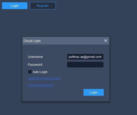 6. Di menu cloud login masukkan email dan password yang sudah terdaftar