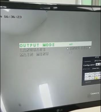 3. setelah itu muncul menu OSD kamera. setalah muncul pilih menu output mode. dengan menggerakan menu PTZ control atas dan kebawah untuk memindahkan cursor, dan iris + untuk enter.