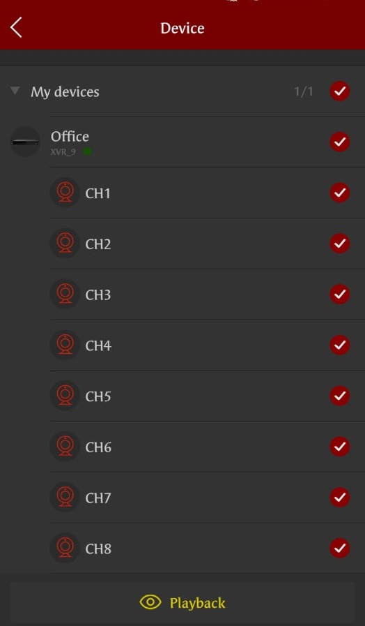 Note: Chanel yang dipilih maksimal 4 tampilan pada pada menu playback